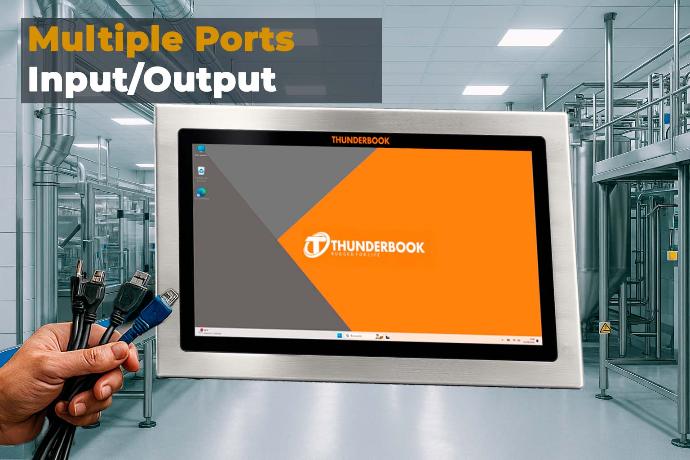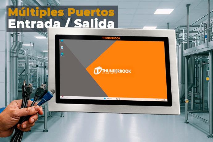 Es un equpio 100% estanco por todos sus lados. Posee conectores roscados M12 para los puertos USB, COM, RJ45, etc.